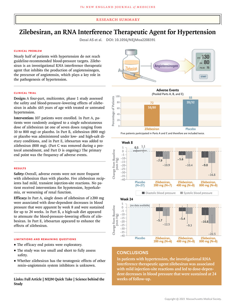 이번 연구 결과는 고혈압 환자들에게 새로운 희망을 제공하며, zilebesiran의 임상 시험을 통해 더 나은 고혈압 치료법이 개발될 수 있을 것으로 기대됩니다.